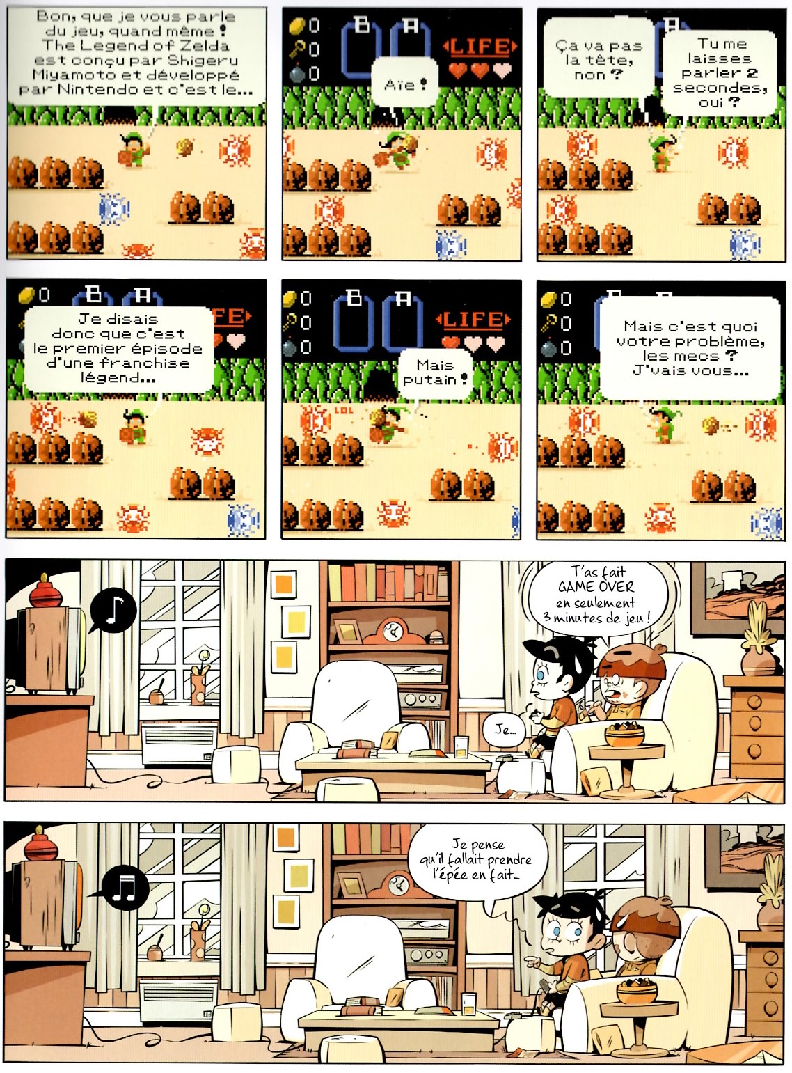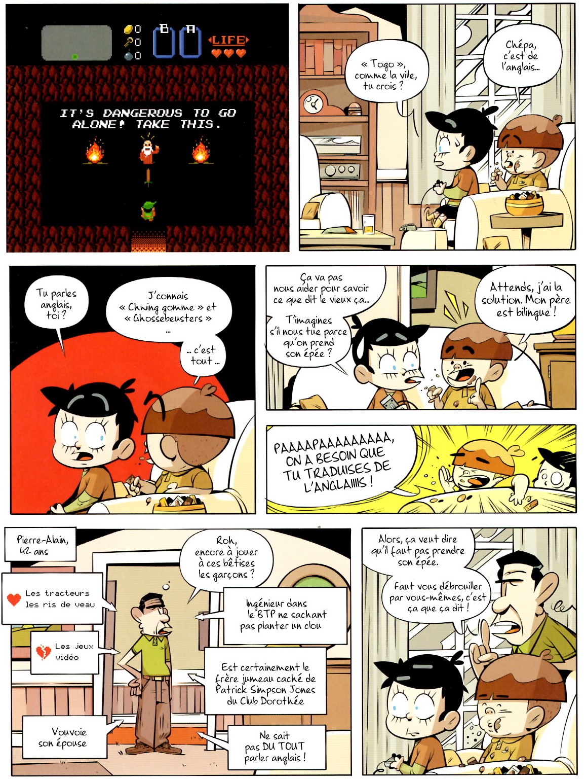 Dès la première page, j'ai l'impression d'être dans Sim City ; le style graphique emprunte beaucoup au Pixel Art ; on retrouve le style d'écriture de Mario Bros pour la préface. Ça parle de bornes d'arcade ; d'Olive et Tom ; de NES ; de Game Boy ; de Mario Bros (évidemment) ; des figurines Chevaliers du Zodiaque ; des tortues ninja etc..